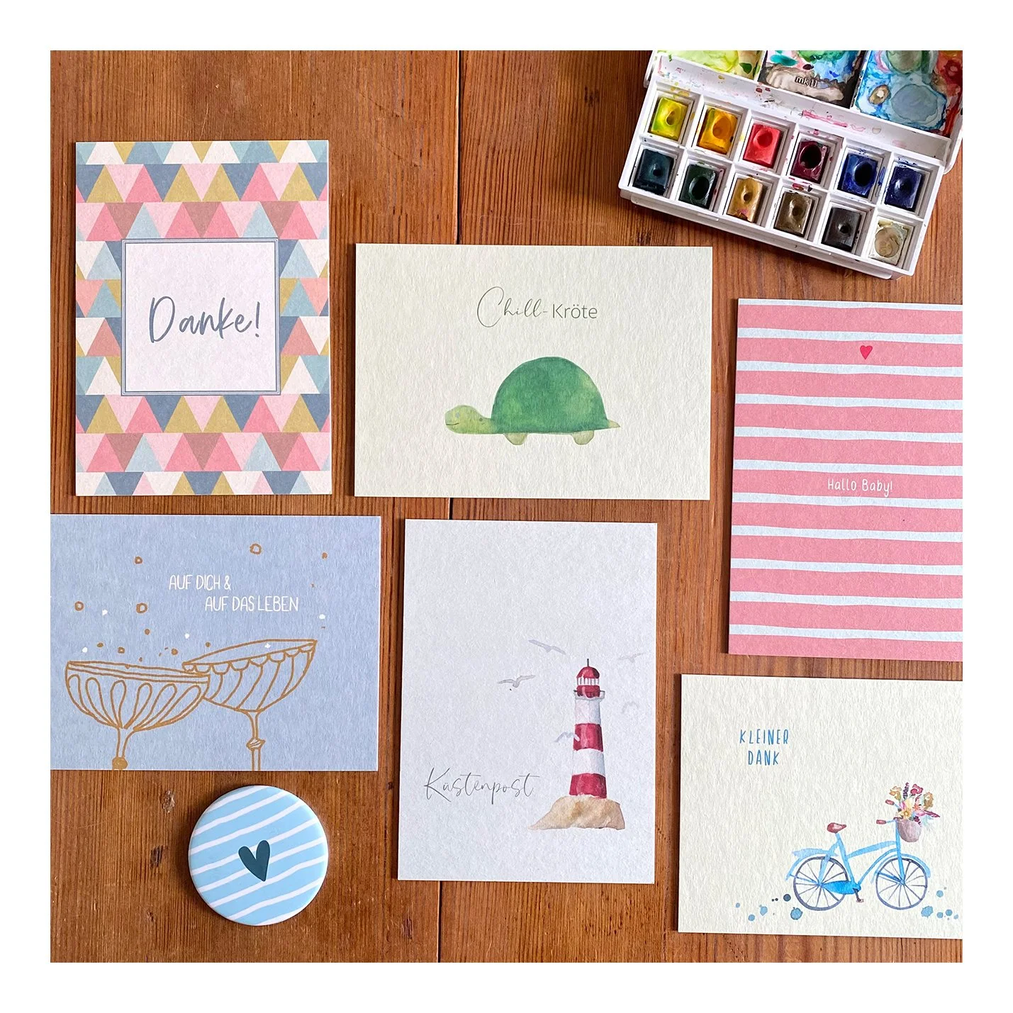 Schenke Freude mit unseren Karten zum Geburtstag und anderen Feiern, zur Hochzeit oder Geburt, als Mutmacher und Motivator oder einfach, um deinem Lieblingsmenschen mit einem kleinen Gruß ein Lächeln ins Gesicht zu zaubern.